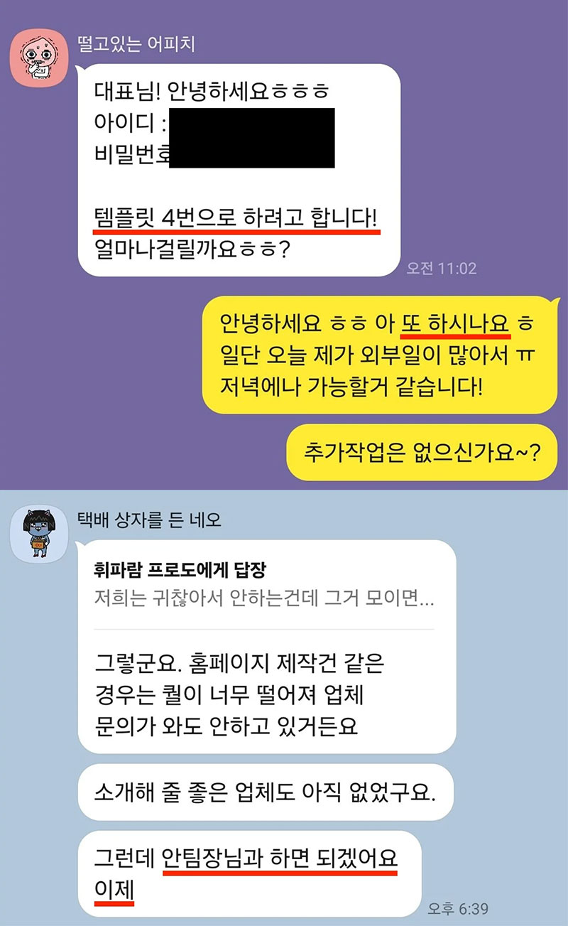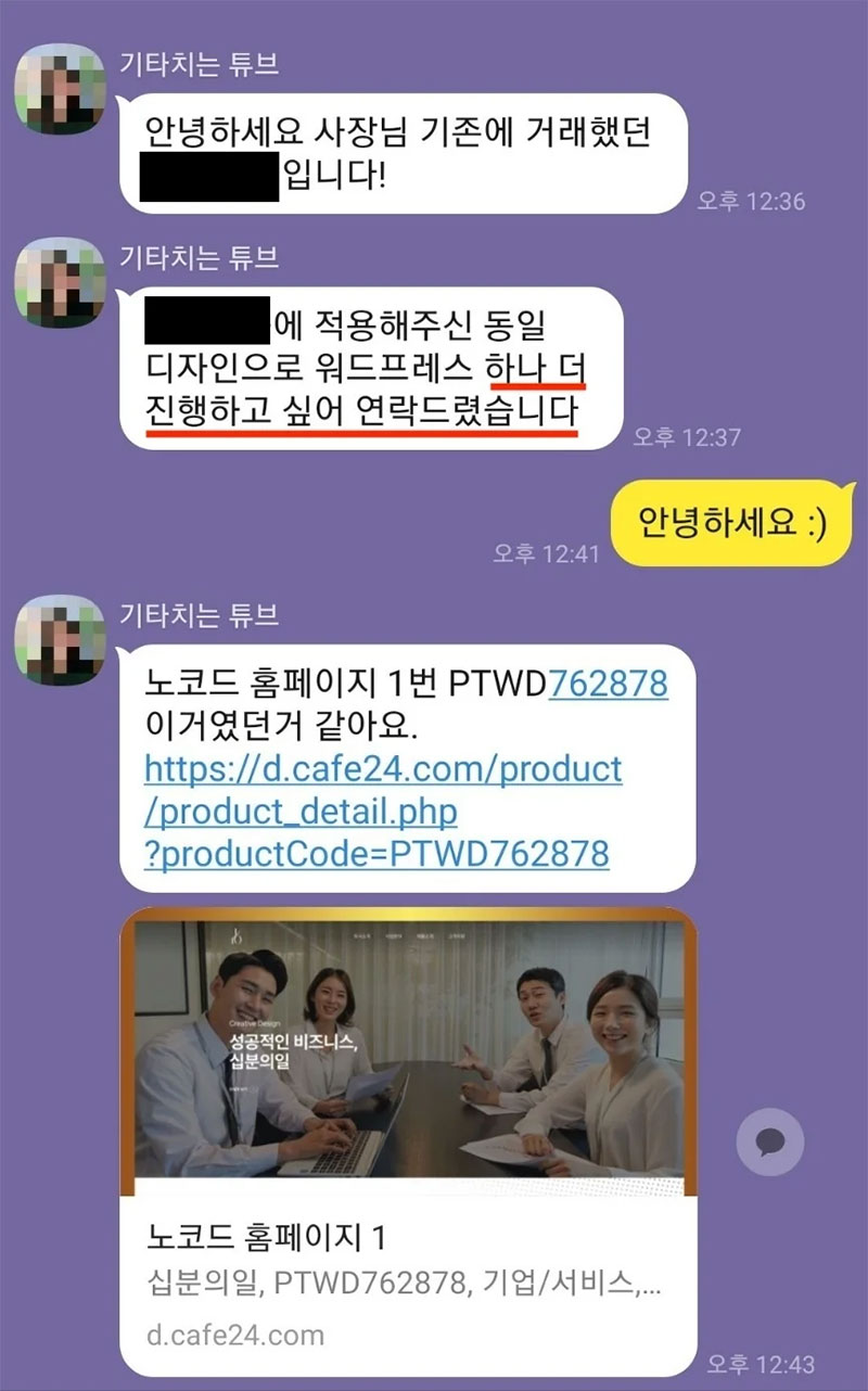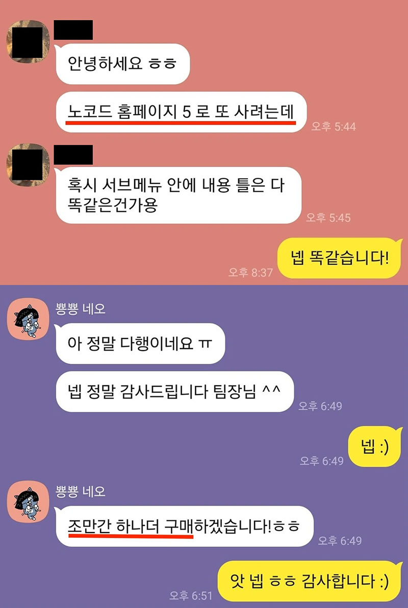 1:1 상담을 통해 상품 단가 안내와 결제에 필요한 정보 안내
